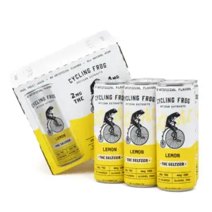 Packed with a powerful blend of CBD, Delta 9 THC, and CBG, these gummies deliver 220 mg of cannabinoids per gummy for a deeply relaxing and euphoric experience. - Cycling Frog THC & CBD Seltzer – Iced Tea Lemonade