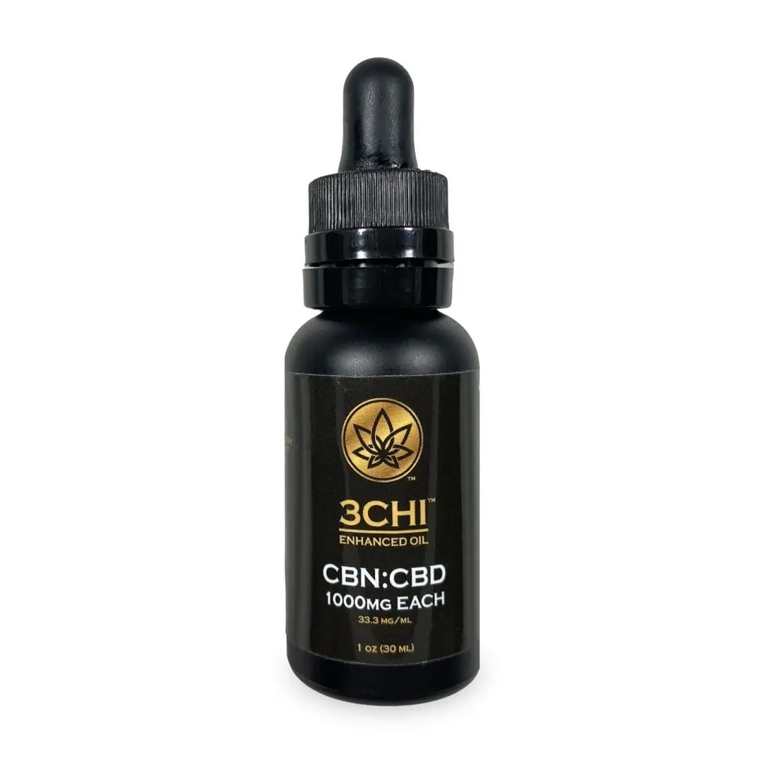 The 3Chi CBN:CBD Oil is a premium hemp extract used for calming nighttime relief. This CBN:CBD Oil is a 1:1 broad-spectrum blend of equal parts cannabinol (CBN) and cannabidiol (CBD). It also has trace amounts of CBG, CBC, and CBDv with a focused terpene blend. Each 30 mL bottle contains 1000 mg of CBN and 1000 mg of CBD. It comes with a metered dropper for accurate dosing.
