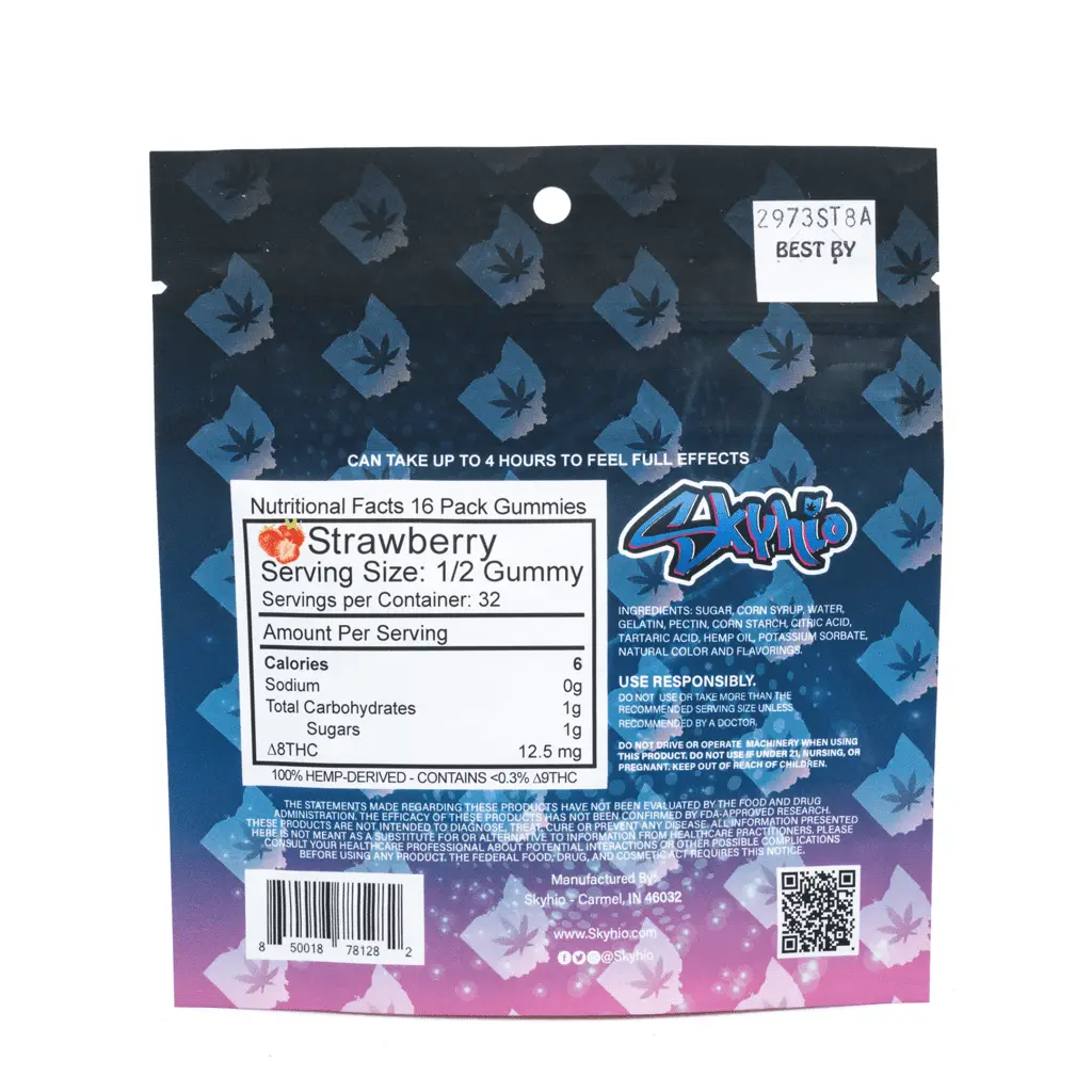 The 3Chi Skyhio Delta 8 Strawberry Gummies are a delicious strawberry-flavored way to enjoy the benefits of Delta 8 THC (D8). They deliver an amazing euphoric effect with a calming body buzz. These tasty gummies are made with flavorless Delta 8 THC distillate derived from US grown hemp, so there’s no cannabis flavor!
