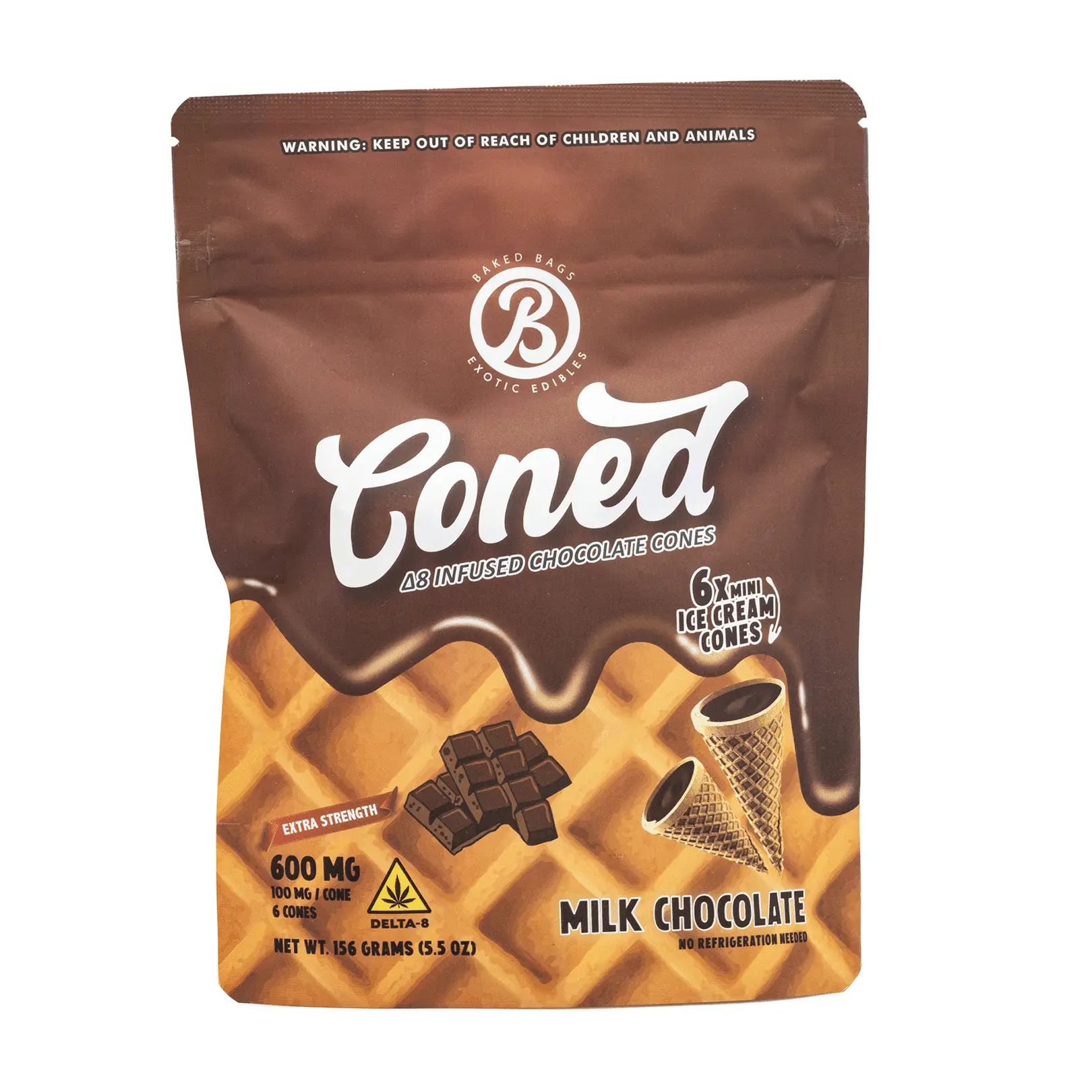Escape to a rich oasis of backyard relaxation with Baked Bags Delta 8 THC Coned – Milk Chocolate. This delectable Delta 8 treat floods the taste buds with creamy, rich chocolate wrapped up in the best part of an ice cream cone. Only 190 calories and 11 grams of sugar make each Coned bite a great way to indulge a sweet tooth.