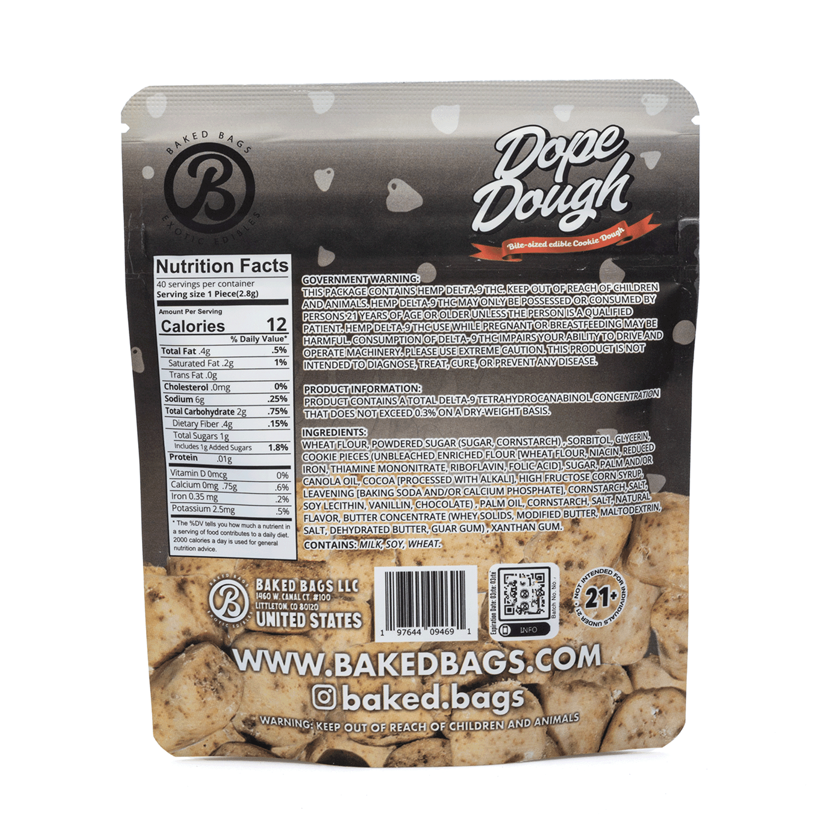 Baked Bags delivers on quality and consistency, transforming the beloved cookies and cream flavor into a premium edible. Snack on them straight from the bag for convenience, or bake them for a warm, gooey experience. Either way, these cookie dough bites promise satisfaction in every bite.