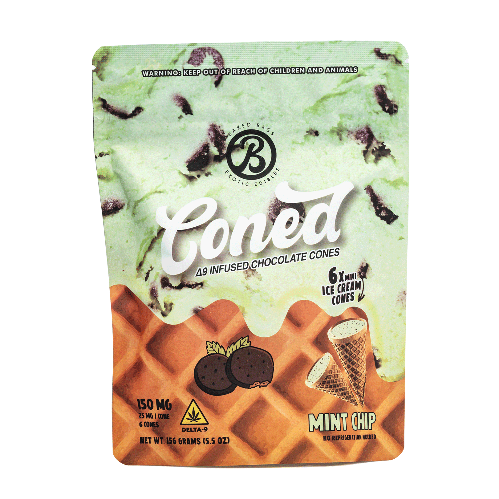 Feel a refreshing breeze of relaxation in every bite of Baked Bags Delta 9 THC Coned – Mint Chip. These are perfectly balanced mint and chocolate all wrapped up in a crispy ice cream cone and packed full of Delta 9 THC. Only 190 calories and 11 grams of sugar make each Coned bite a chill treat to the end.