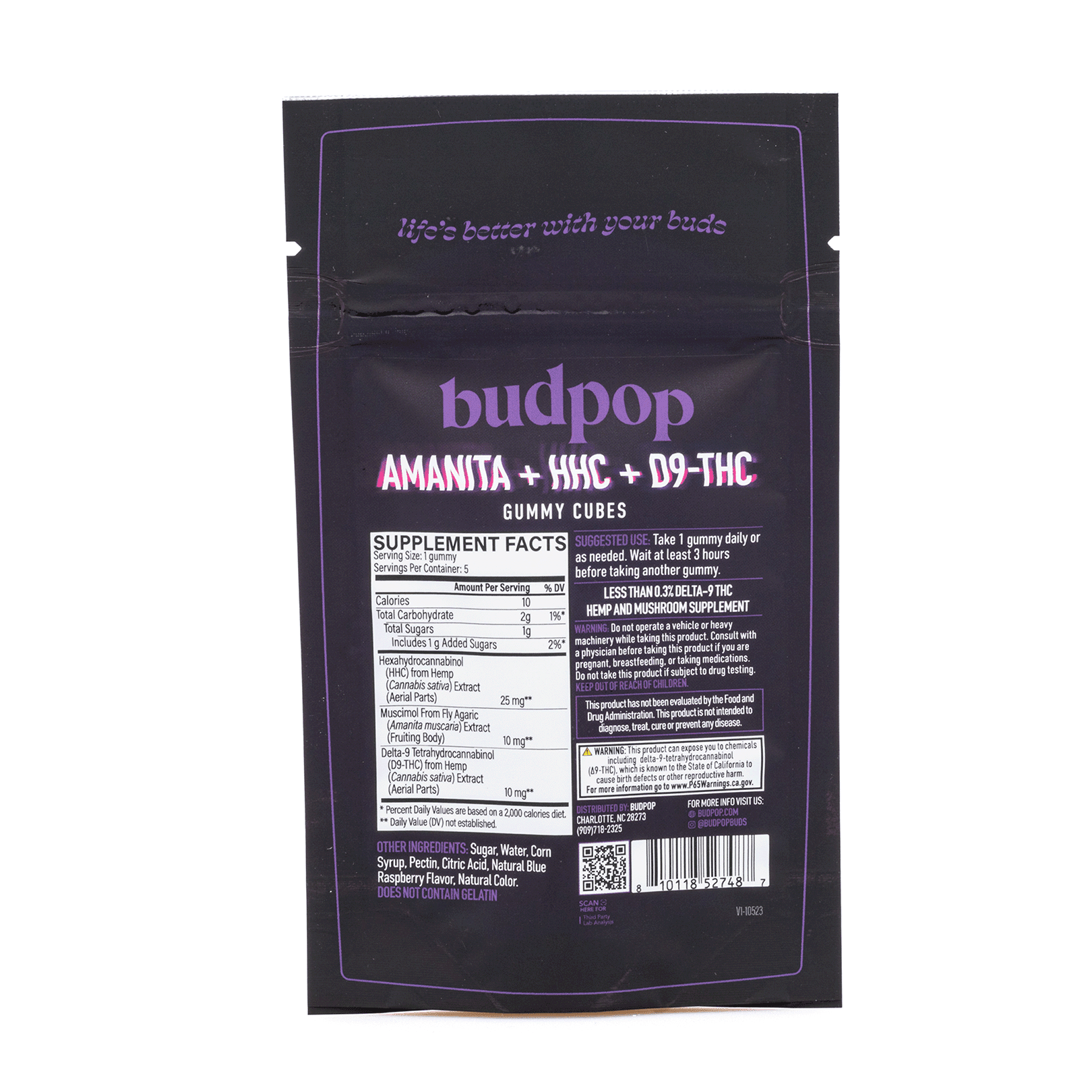 Budpop Amanita Muscaria Mushroom + HHC + Delta 9 Gummies (5 Count) Amanita COA
