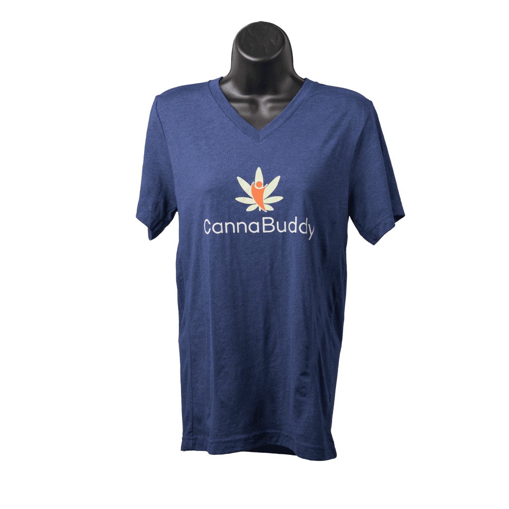 Enjoy comfort all day with a super soft, compression-free, and breathable V-neck blue t-shirt. Made from 50% polyester, 25% cotton, and 25% rayon, these t-shirts are ready for a night out on the town, a hike on a hot day, or just hanging around the house. CannaBuddy chose the highest quality materials to ensure long-lasting apparel that won’t fade with a logo that stays intact.