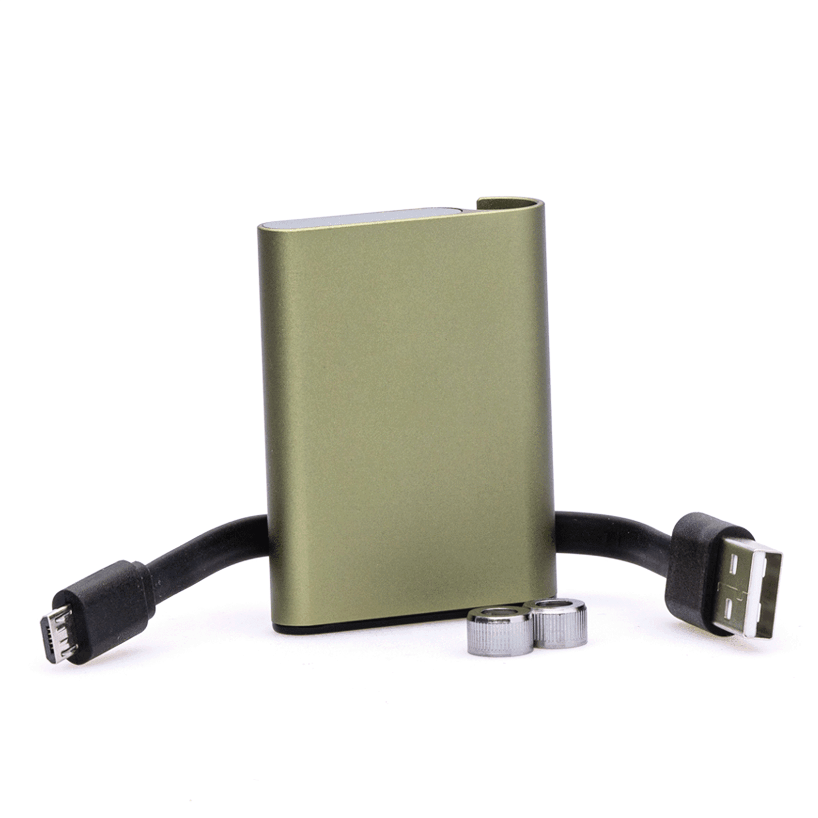 Each box contains one 500 mAh capacity 3.7v battery, a magnetic thread adapter for a 0.5-milliliter cartridge, a magnetic thread adapter for a 1-milliliter cartridge, and a USB charging cord. Every battery is housed in aluminum alloy and equipped with a built-in stealth LED breathing indicator. Factory tests are conducted on all batteries to ensure quality and efficacy.