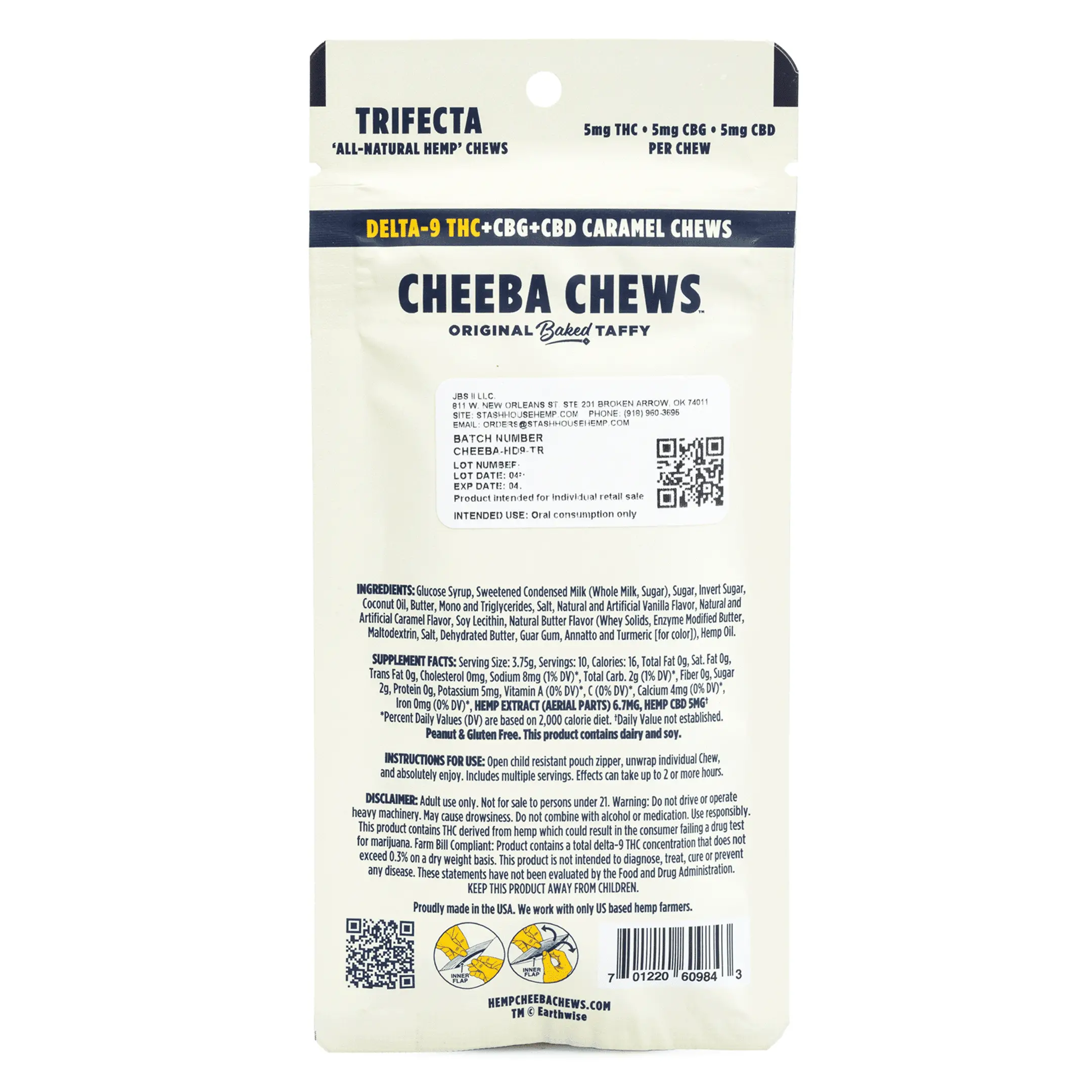 Cheeba Chews Delta 9 and CBG and CBD Caramel Chews – Trifecta delivers a delightful caramel experience designed to bring balance to both body and mind. Infused with an even blend of 5 milligrams each of cannabigerol (CBG), cannabidiol (CBD), and Delta 9 tetrahydrocannabinol (THC), these chews offer a well-rounded and manageable way to experience the benefits of cannabinoids. With 10 chews per pack, they provide a total of 150 milligrams of balanced bliss.