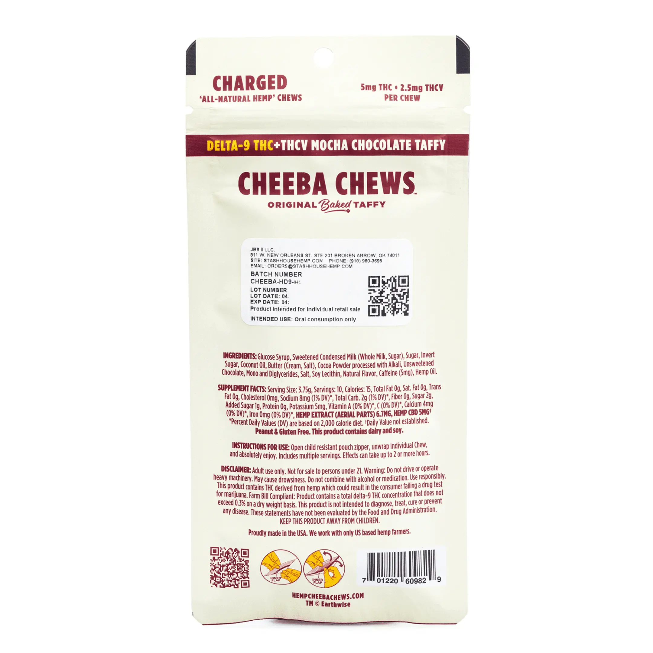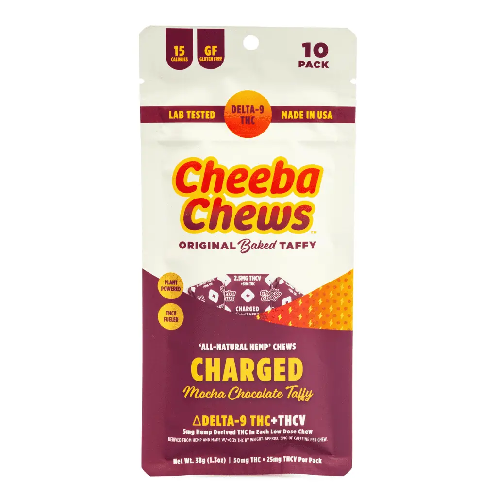 Cheeba Chews Delta 9 and THCv Mocha Chocolate Taffy – Charged delivers a bold mocha chocolate taffy experience crafted to energize both body and mind. Each chew is infused with 5 milligrams of Delta 9 THC, 2.5 milligrams of THCv, and a touch of caffeine for a balanced burst of energy and focus. With 20 chews per pack, they provide a total of 50 milligrams of THC and 25 milligrams of THCv, offering a reliable and uplifting experience.
