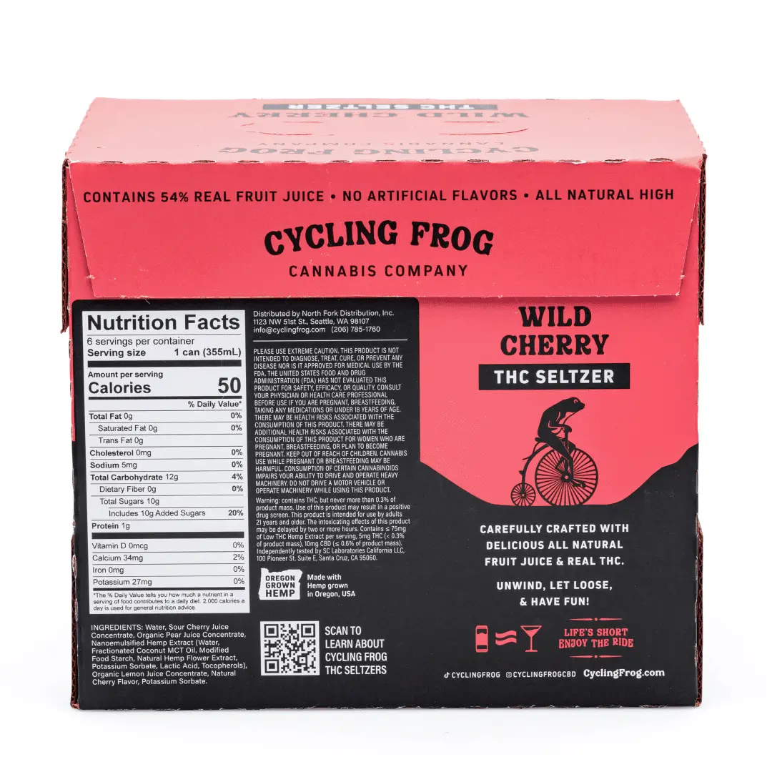 Cycling Frog THC + CBD Seltzer 6 Pack – Wild Cherry (30 mg Delta 9 THC + 60 mg CBD Total) COA