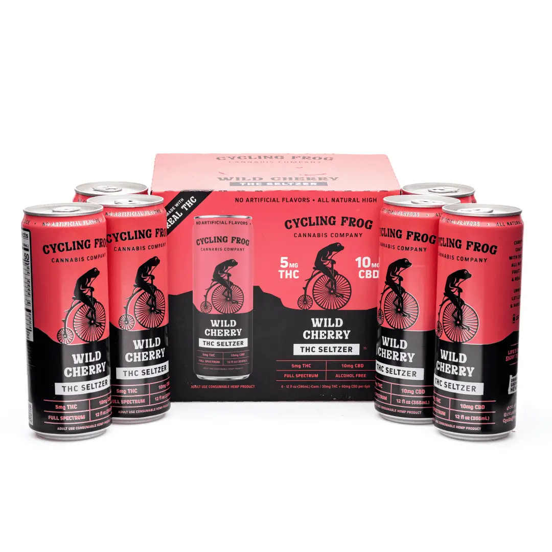 Cycling Frog THC + CBD Seltzer 6 Pack – Wild Cherry (30 mg Delta 9 THC + 60 mg CBD Total)