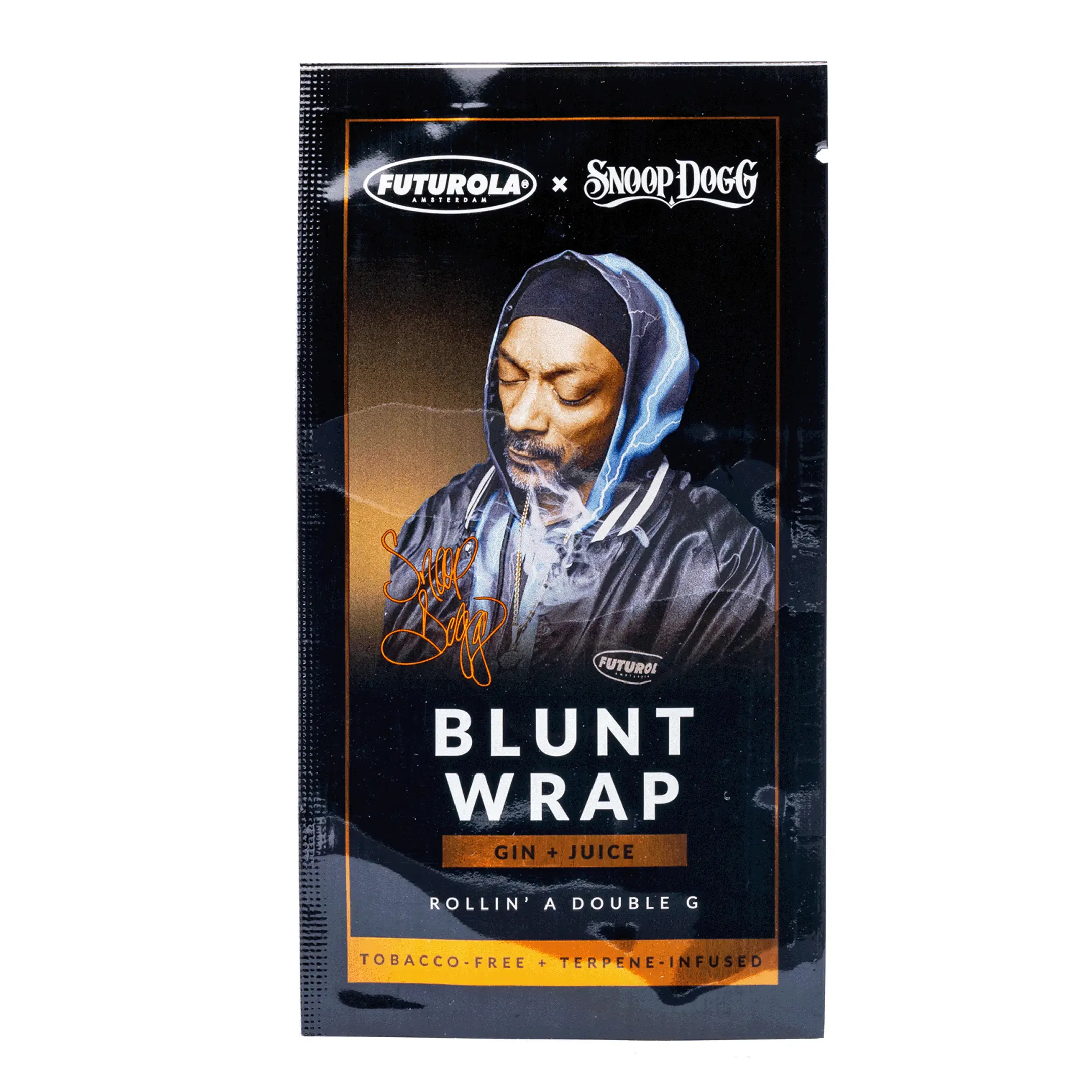 Blunt wraps are thin, pliable sheets used to roll flower or other herbal blends. Unlike traditional rolling papers, they are larger and burn more slowly, making them ideal for extended sessions. While many blunt wraps are made with tobacco, modern versions like the Futurola X Snoop Dogg Gin and Juice wraps are crafted without nicotine or tobacco and instead use a clean, plant-based fiber blend. This offers a smoother alternative while still delivering the format and feel of a classic blunt.