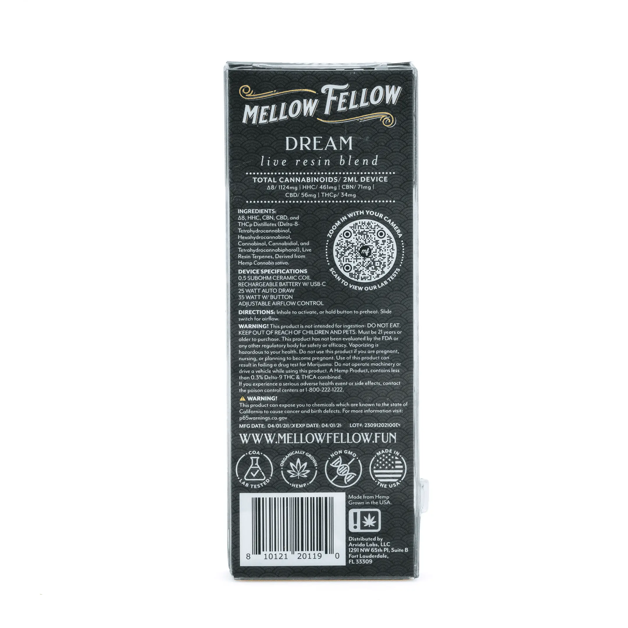 Mellow Fellow Dream Blend Live Resin Disposable Vape – MK Ultra COA