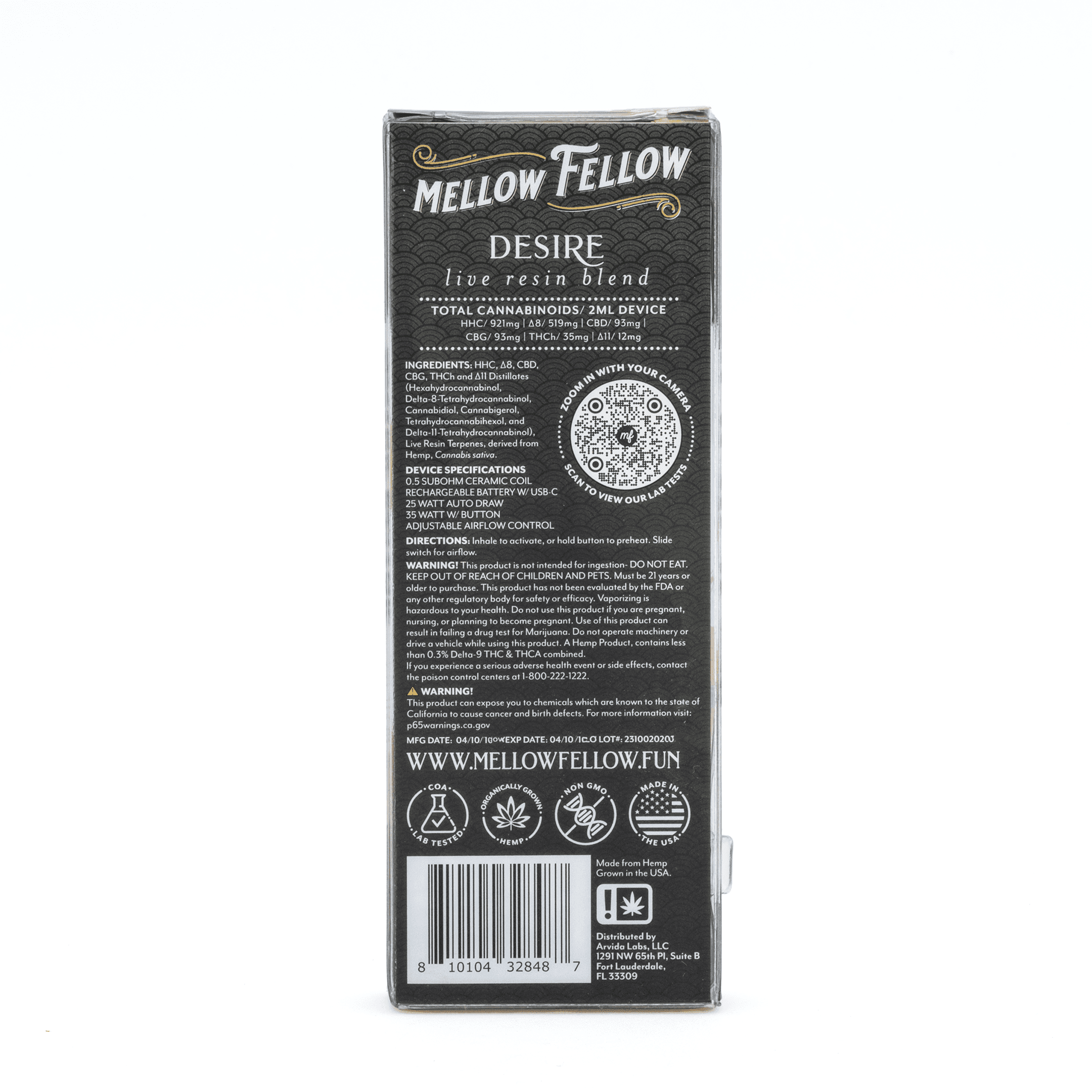 Mellow Fellow Desire Blend Live Resin Disposable Vape – Cali Gas COA