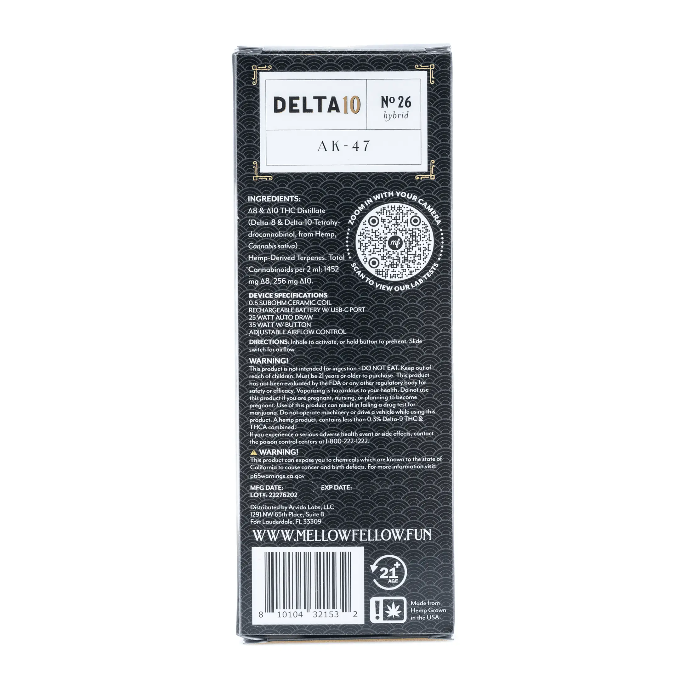 Mellow Fellow Delta 10 THC 2 gram Disposable Vape – AK-47 COA
