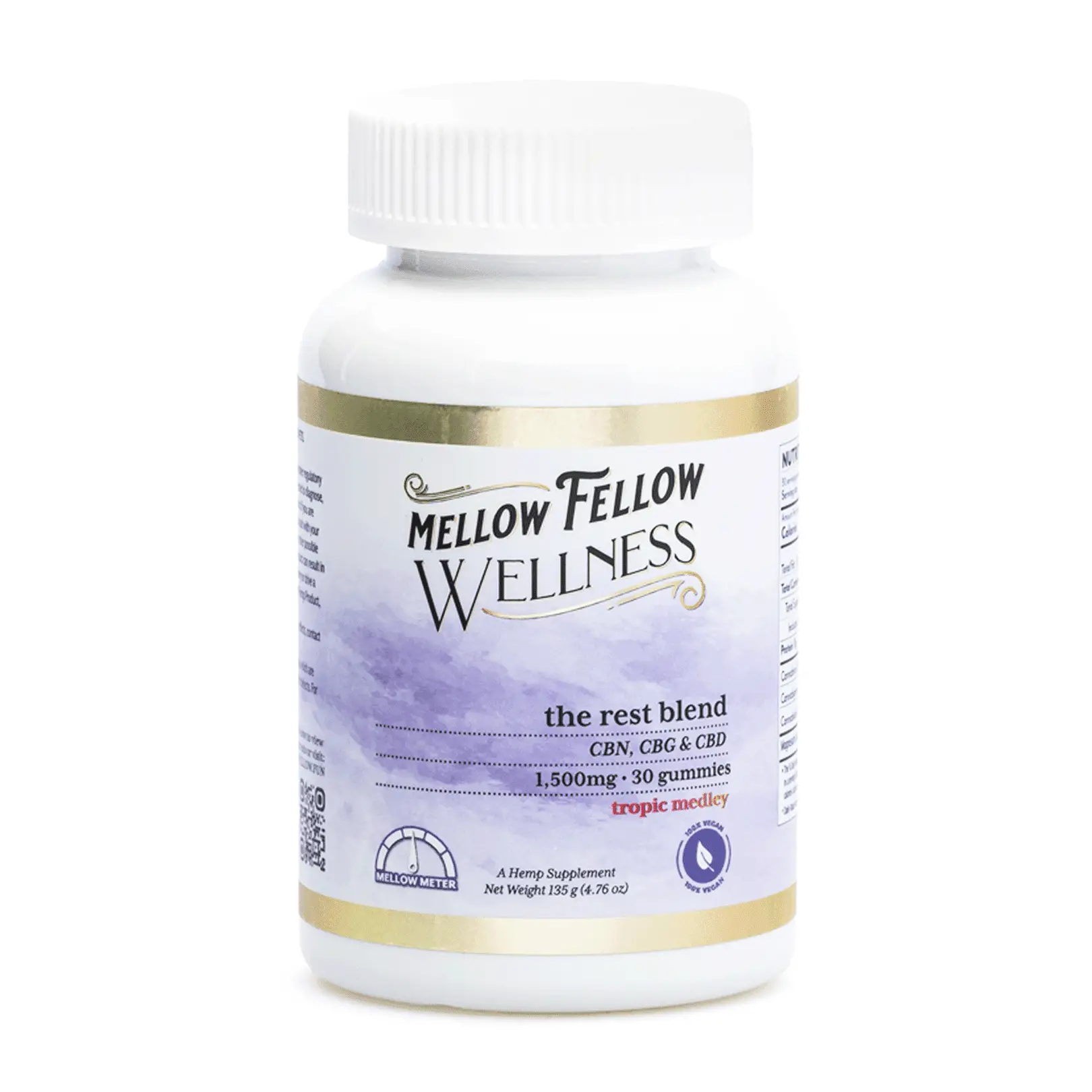 Mellow Fellow Rest Blend Wellness Gummies are designed to deliver targeted relaxation and relief with a precise combination of CBG, CBN, and CBD. Each gummy combines the power of premium cannabinoids and carefully selected terpenes for a smooth and consistent experience.