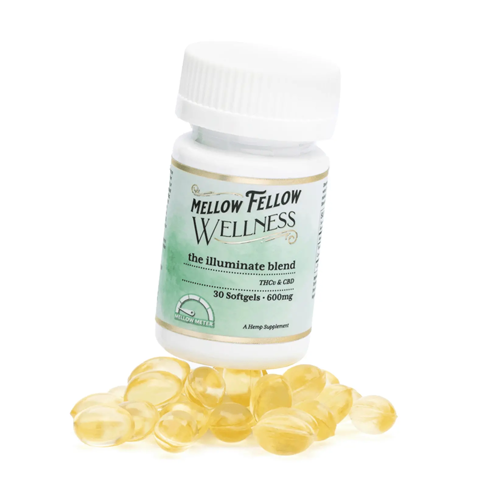 Mellow Fellow Wellness Softgel Capsules – Focus Blend are expertly crafted to enhance focus, mental clarity, and balanced energy throughout the day. Each capsule combines CBD and THCv, offering a synergistic effect that supports productivity and mental sharpness without jittery side effects. With 20 milligrams per softgel and 600 milligrams per bottle, this blend provides consistent and reliable dosing.
