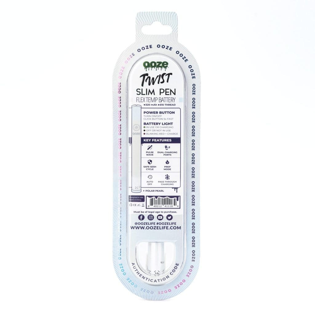 The Ooze Slim Twist Pen 2.0 Vape Battery – Polar Pearl has all the wonderful features of the best selling original Ooze Slim Twist Vape Pen, but has been revamped with new features and a sleeker look. This new vape pen battery has a sturdier feel with more weight in your hand and a more streamlined silhouette. The flex temp dial on the bottom has also been updated. The voltage has been slightly lowered, with a new range from 2.0V to 4.0V, which works better with oil cartridges that are notorious for burnt coils. To adjust the voltage level, you simply twist the dial on the bottom, which has notches that click into place, allowing you to know exactly how hot the device is heating at any given moment.