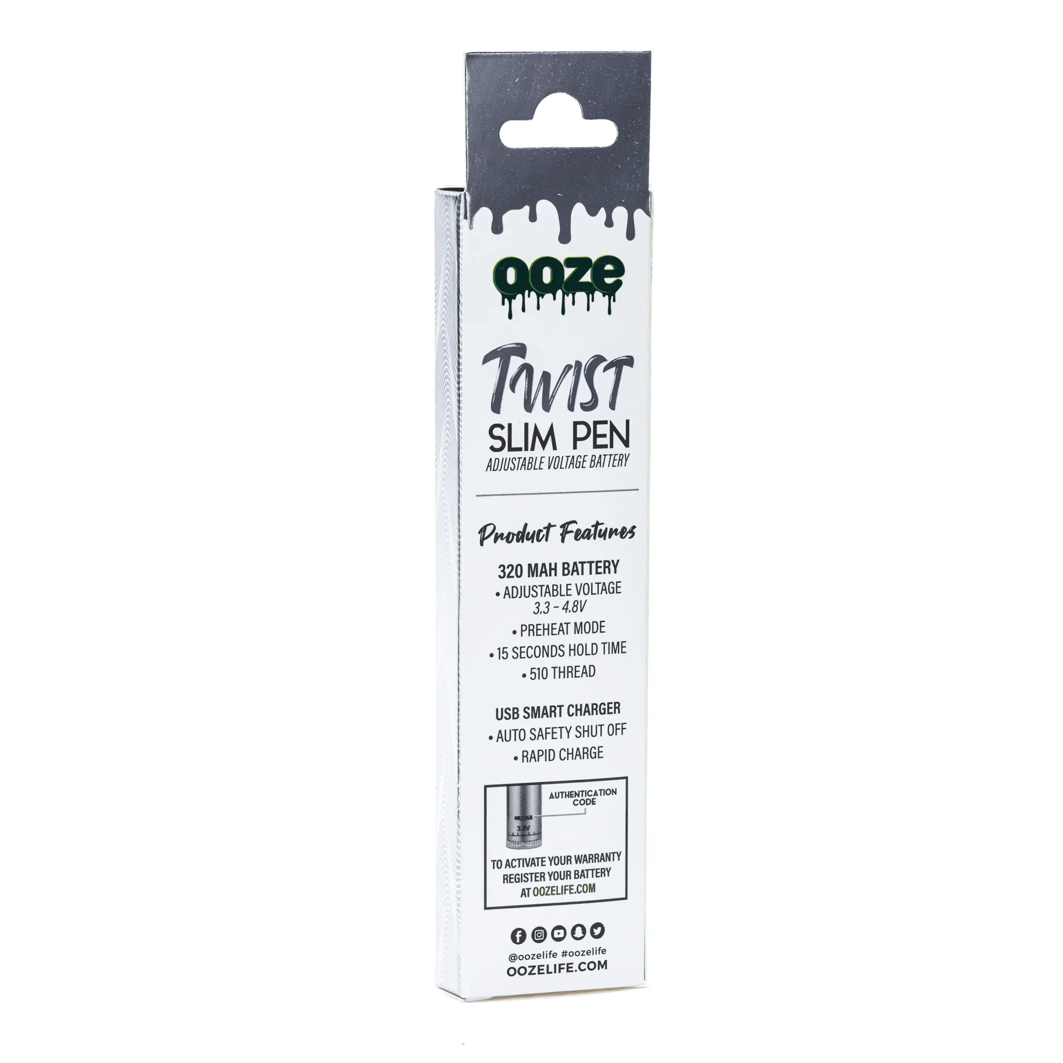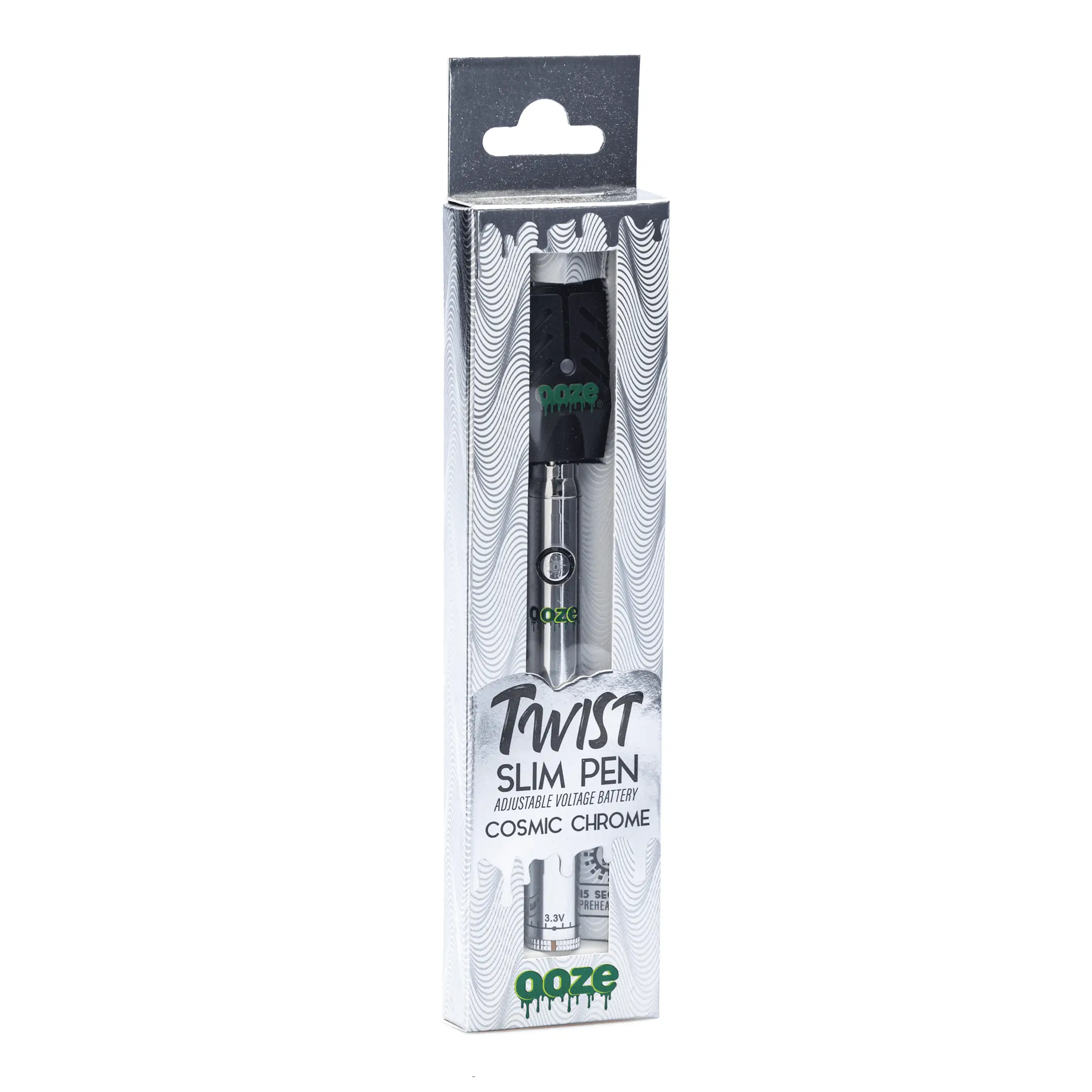 Forget all vape batteries you’ve used before… the Ooze Slim Twist Pen Vape Battery – Cosmic Chrome blows all others out of the water! Featuring the new preheat mode (15 seconds of continuous heating without holding the button) and adjustable temperature settings, the Ooze Slim Twist Pen Vape Battery is perfect for anyone just starting to use vape cartridges or your everyday veteran. Compatible with all oil, concentrate, and essential oil cartridges with a 510 thread. Voltage settings range from 3.3V to 4.8V.