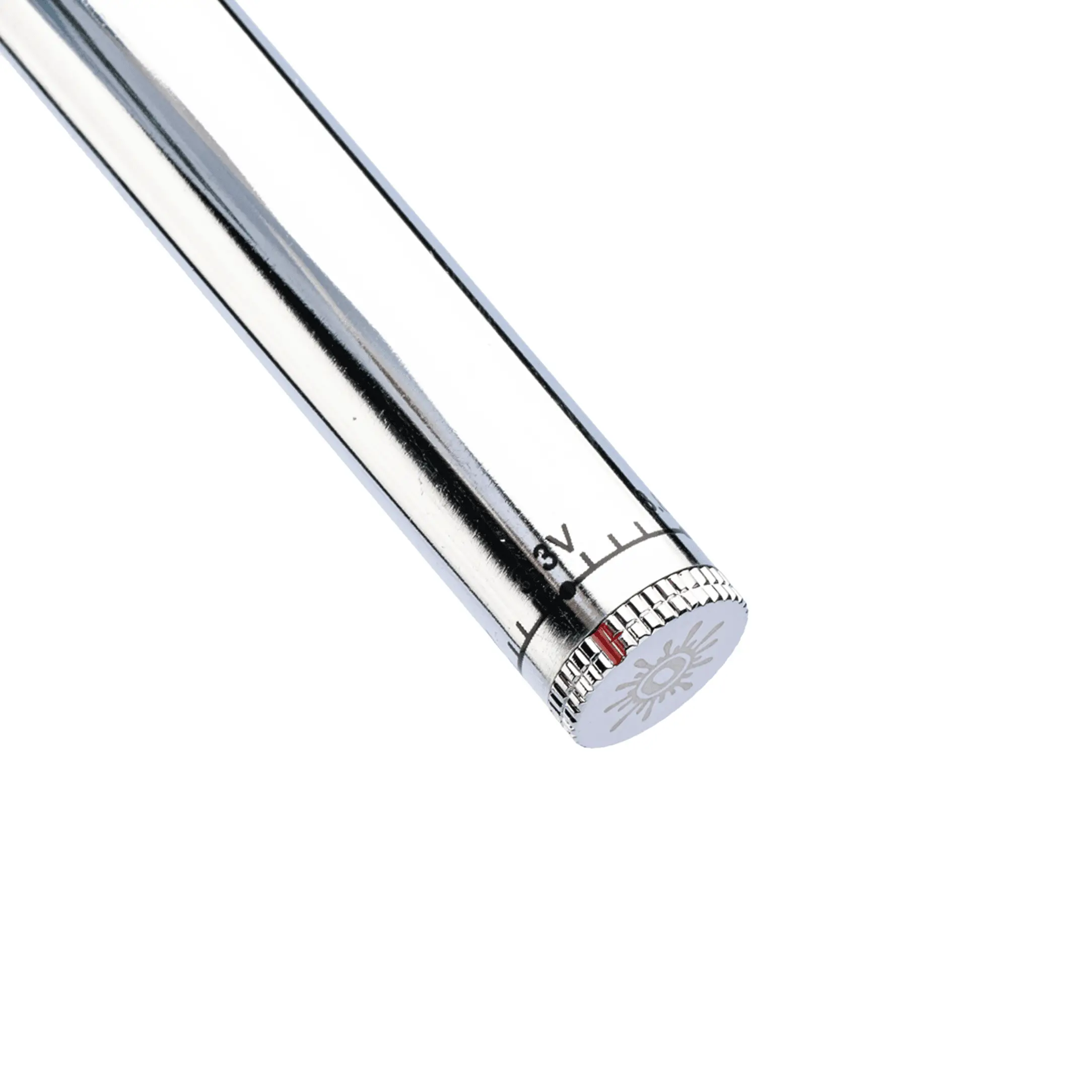 - Adjust the battery voltage by rotating the dial at the bottom of the device. It has a range of 3.3 volts to 4.8 volts. The higher the voltage, the hotter the battery will get.