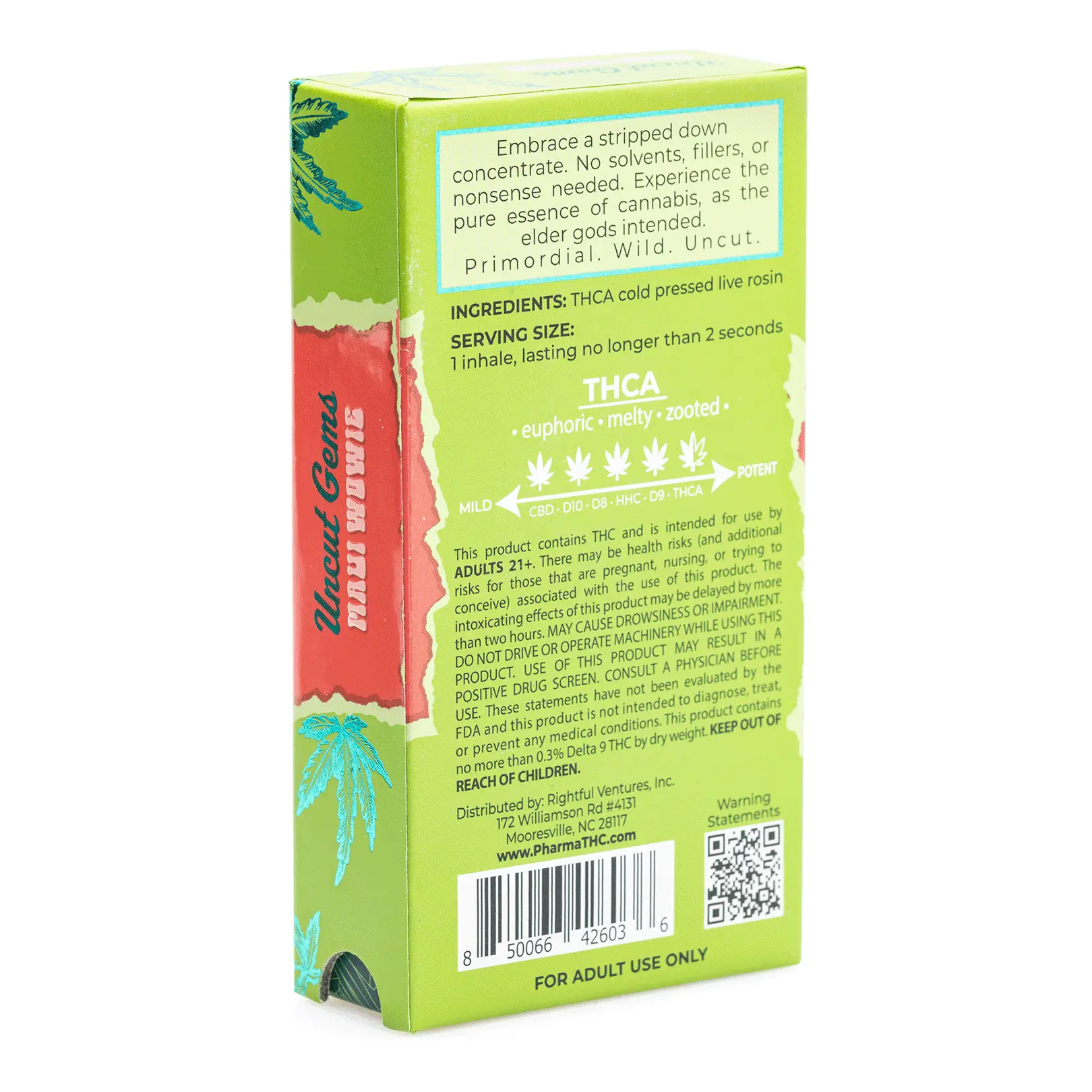 PharmaTHC Unct Gems THCa Live Rosin Vape Cartridge – Maui Wowie (.5 gram) COA