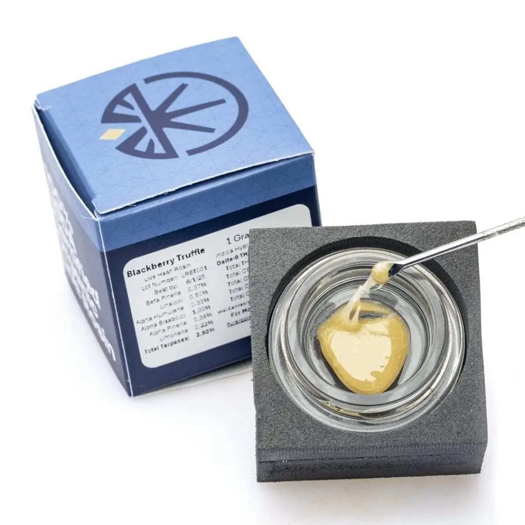 Each 1-gram jar of Blackberry Truffle Live Rosin is stored in a child-resistant container, ensuring both freshness and security. With its buttery, easy-to-handle texture, this concentrate invites enthusiasts to indulge in a rich, terpene-forward session that lingers long after the last exhale.