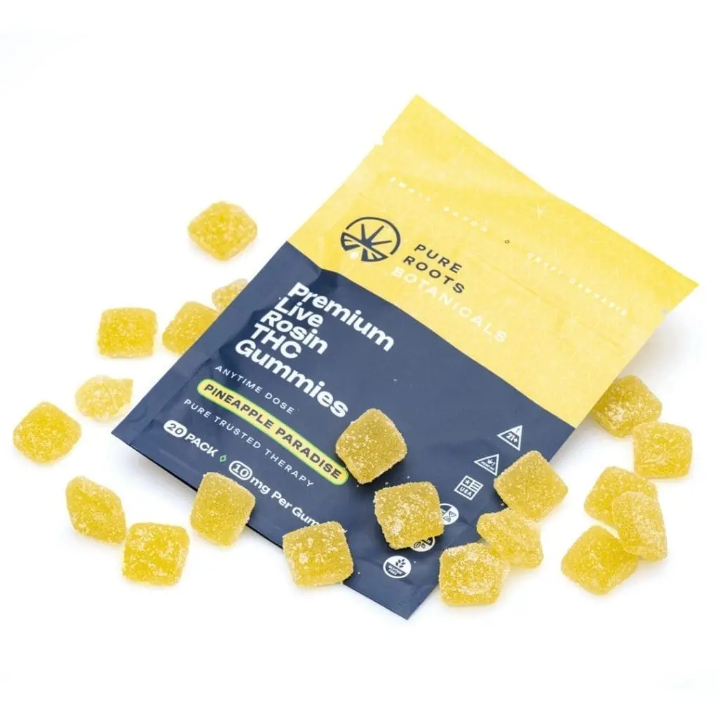 Pure Roots Botanicals THC Live Rosin Gummies – Pineapple Paradise (200 mg Total Delta 9 THC) COA