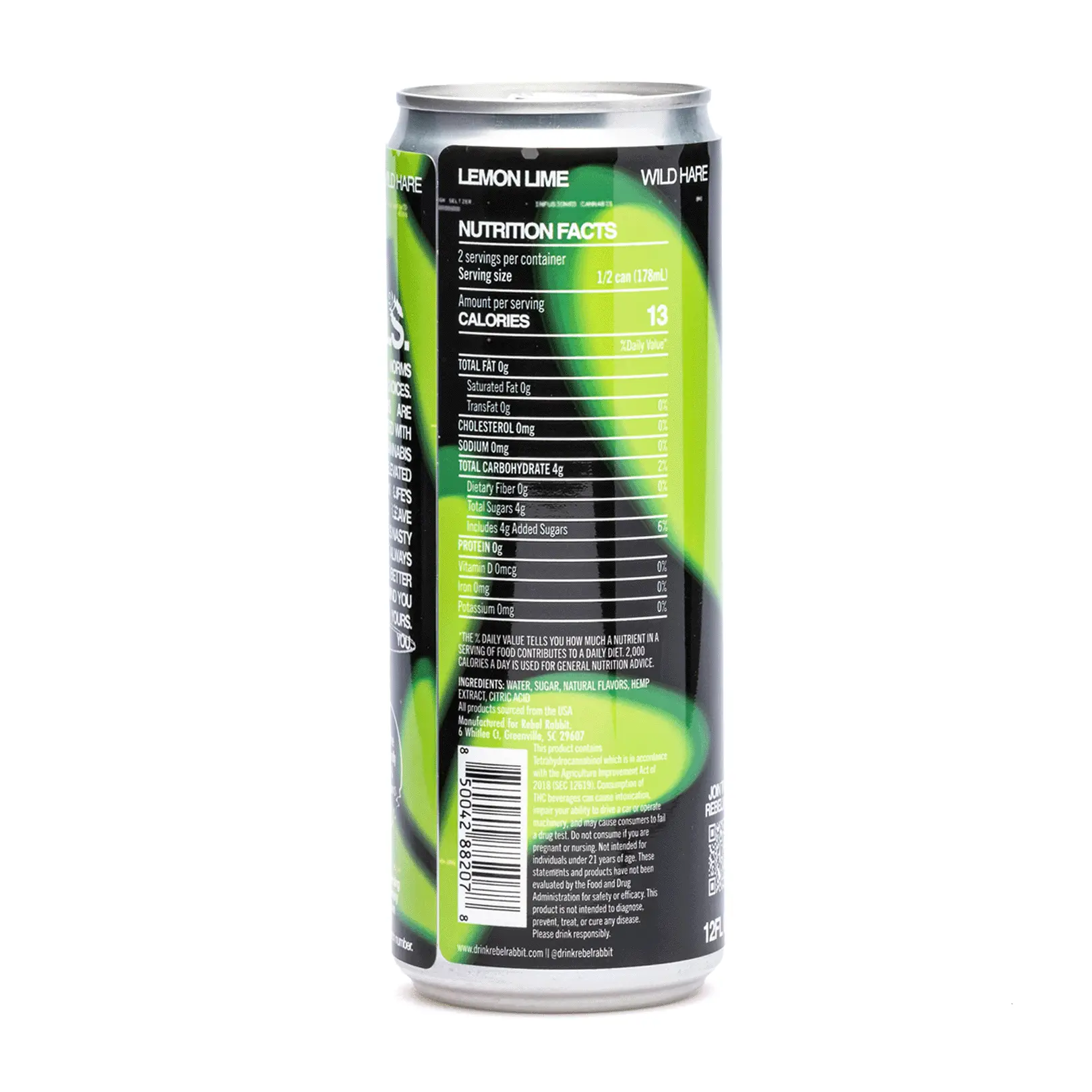 A Rebel Rabbit Wild Hare Delta 9 THC Seltzer – Lemon Lime is a crisp refreshing way to elevate any party. Relish in life’s finer moments with a lightly sweet seltzer packed with Delta 9. There are only 26 calories and 8 grams of cane sugar, making each can a guilt-free indulgence.