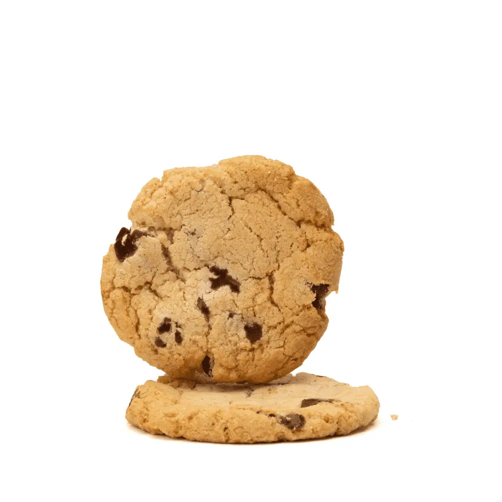 Flour (wheat), Sugar, Butter (milk), Brown Sugar, Egg, Chocolate Chips, Vanilla Extract, Soda, Salt, Hemp-Derived Delta 8 THC Distillate, contains trace amounts of soy