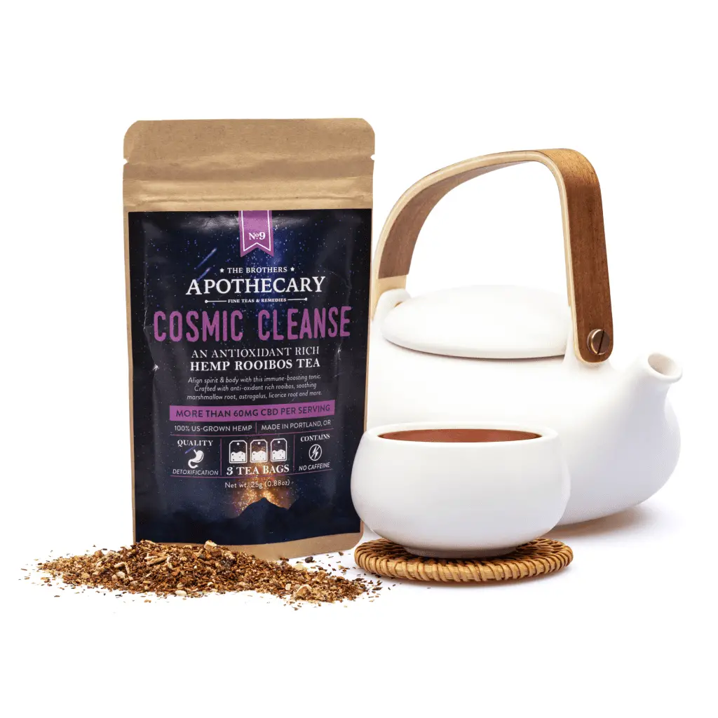 Elevate yourself, starting with body and peaking with mind & spirit. Crafted with antioxidant-rich Rooibos, stomach-soothing Licorice root, skin & gut supporting Marshmallow root, the powerful Astragalus, and much more, our Cosmic Cleanse is brewed for a better you. Gentle, naturally sweet & slightly nutty, this blend is easy to drink & impossible not to love. Each package contains: 3 tea bags, 60 MG Full Spectrum CBD per tea bag, NO caffeine, coconut milk (used as a lipid to increase CBD absorption)