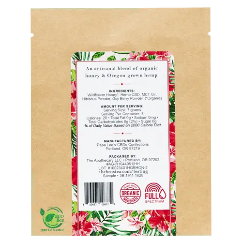The Brothers Apothecary Highbiscus & Goji Berry CBD Honey – 5 Pack (75 mg Total CBD) COA