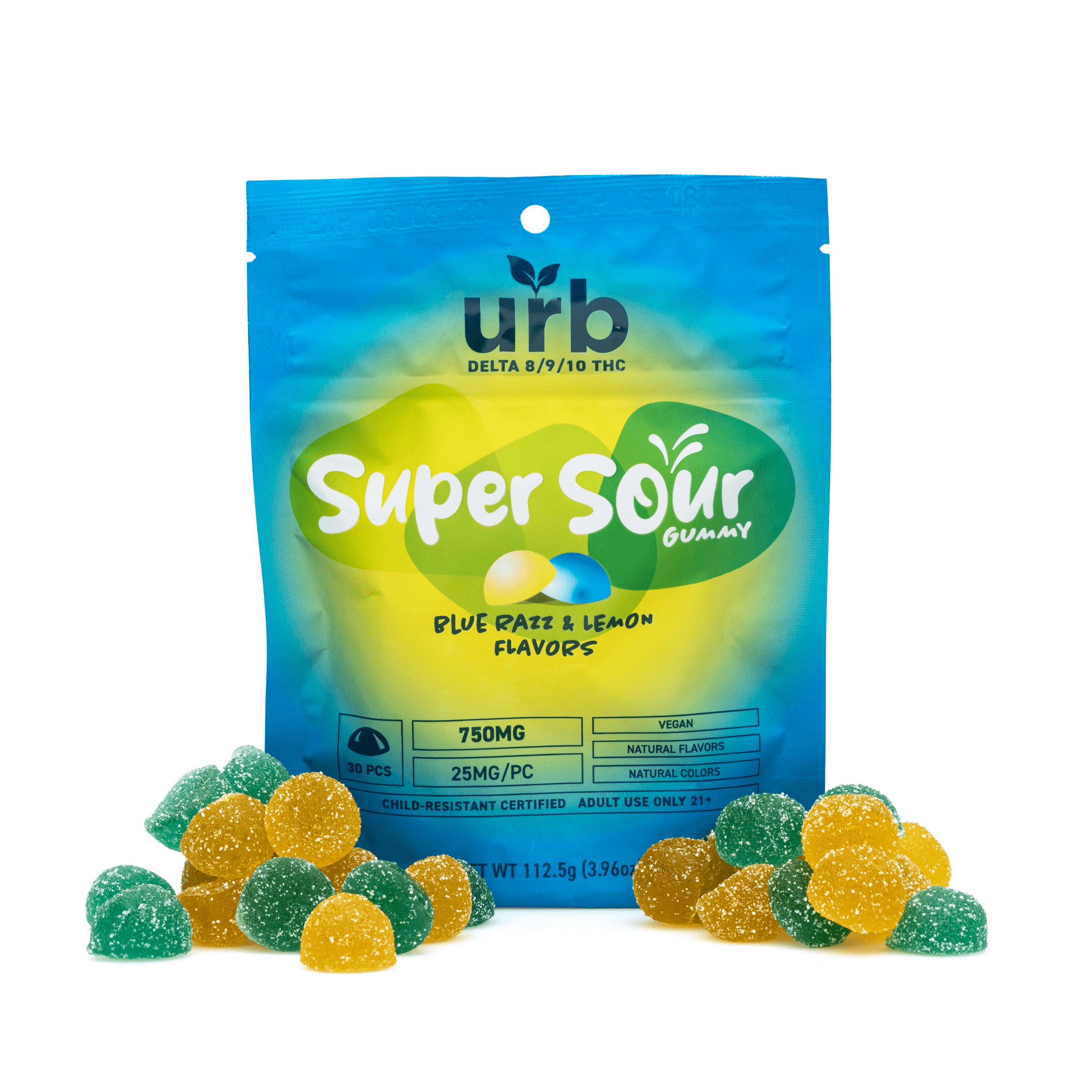 The Urb Delta 8 / Delta 9 / Delta 10 THC Super Sour Gummies – Blue Razz and Lemon explode across your tongue with super sour flavors leaving your mouth puckered and taste buds satisfied. These gummies blend blue raspberry and lemon with a formula that guarantees maximum taste and effect. With only 8 calories and zero sugar, every bite is blissfully guilt-free. Urb’s entourage of Delta 8, Delta 9, and Delta 10 uplifts the mood, energizes the mind, and leaves the body relaxed. You can start the day off strong, or enjoy yourself long into the night.