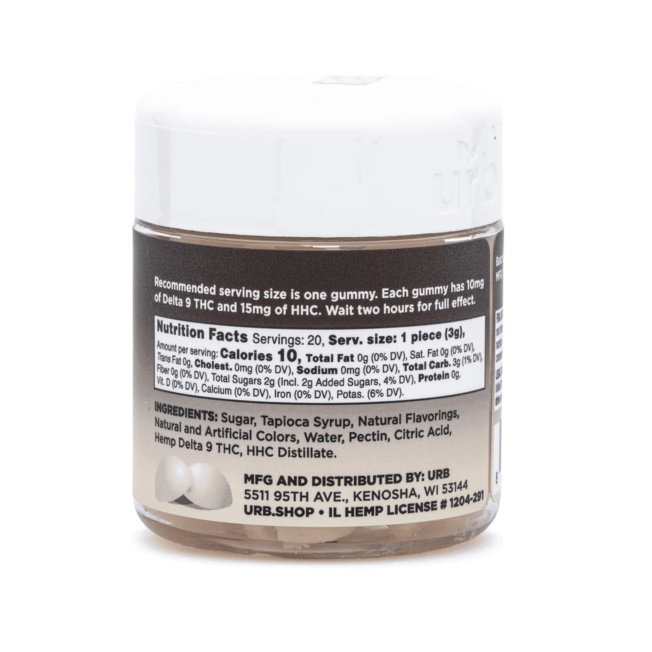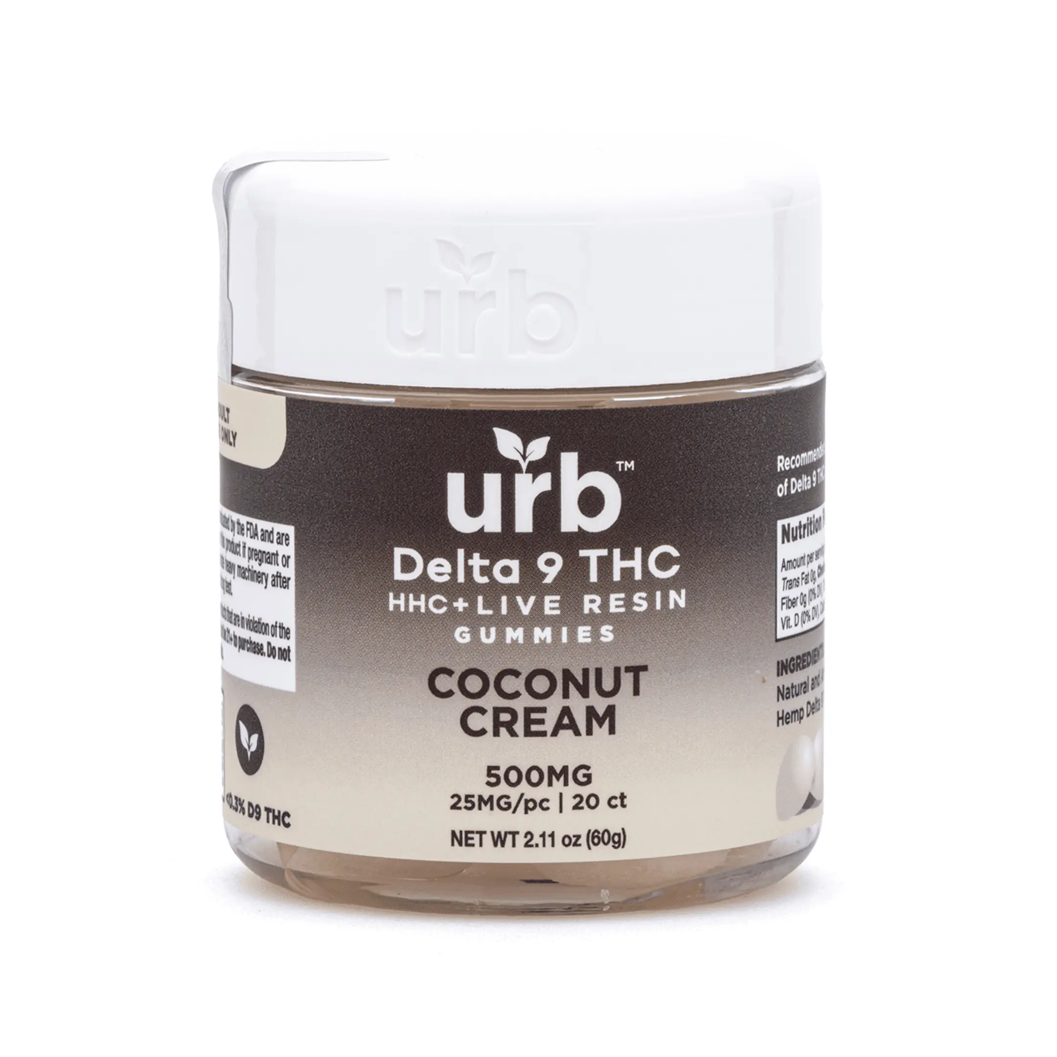 Urb Delta 9 THC HHC Live Resin Gummies – Coconut Cream (200 mg Total Delta 9 THC + 300 mg Total HHC) COA