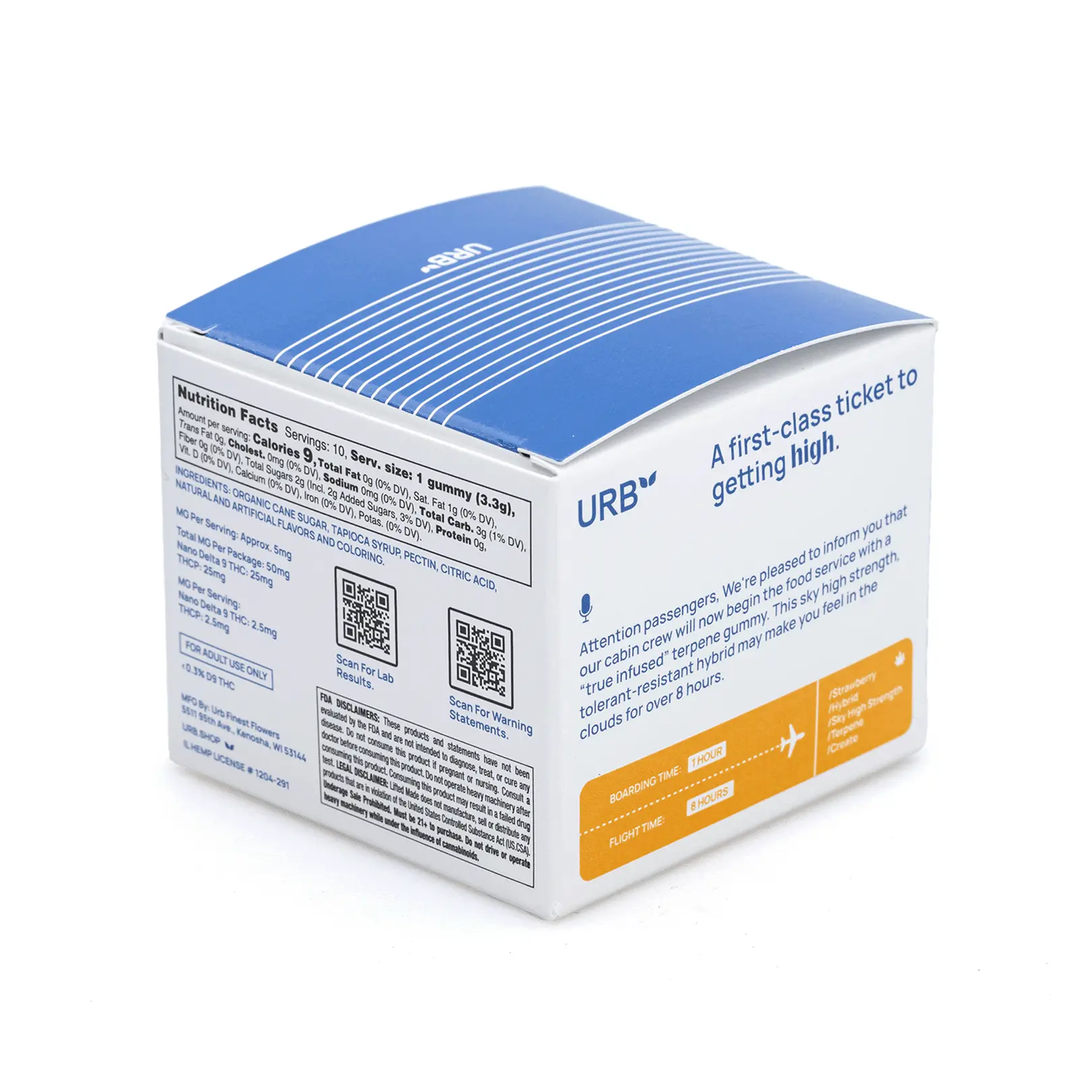 Invigorate and energize the mind with Urb THCP / Delta 9 Mile High Skybites – Strawberry Lemon. This zesty fusion combines a potent dose of nano Delta 9 and THCP with delicious natural terpenes to create a clear-headed and elevated effect. Each gummy has only 9 calories and 2 grams of sugar. So, buckle up and put your tray in the upright position. It’s going to be a long guilt-free ride through the sky.