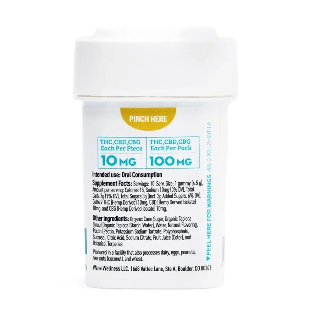 Take a deep breath and sink into a state of bliss with Wana Relax Gummies – Blueberry Lemonade. Infused with 10 milligrams of Delta 9 THC, 10 milligrams of CBD, and 10 milligrams of CBG per gummy (300 milligrams total cannabinoids per package), these melt-proof, vegan gummies deliver a harmonious balance of relaxation and clarity. With a burst of juicy blueberry and a splash of tart lemonade, every bite is a refreshingly smooth way to unwind, recharge, and let go of the day’s stress.