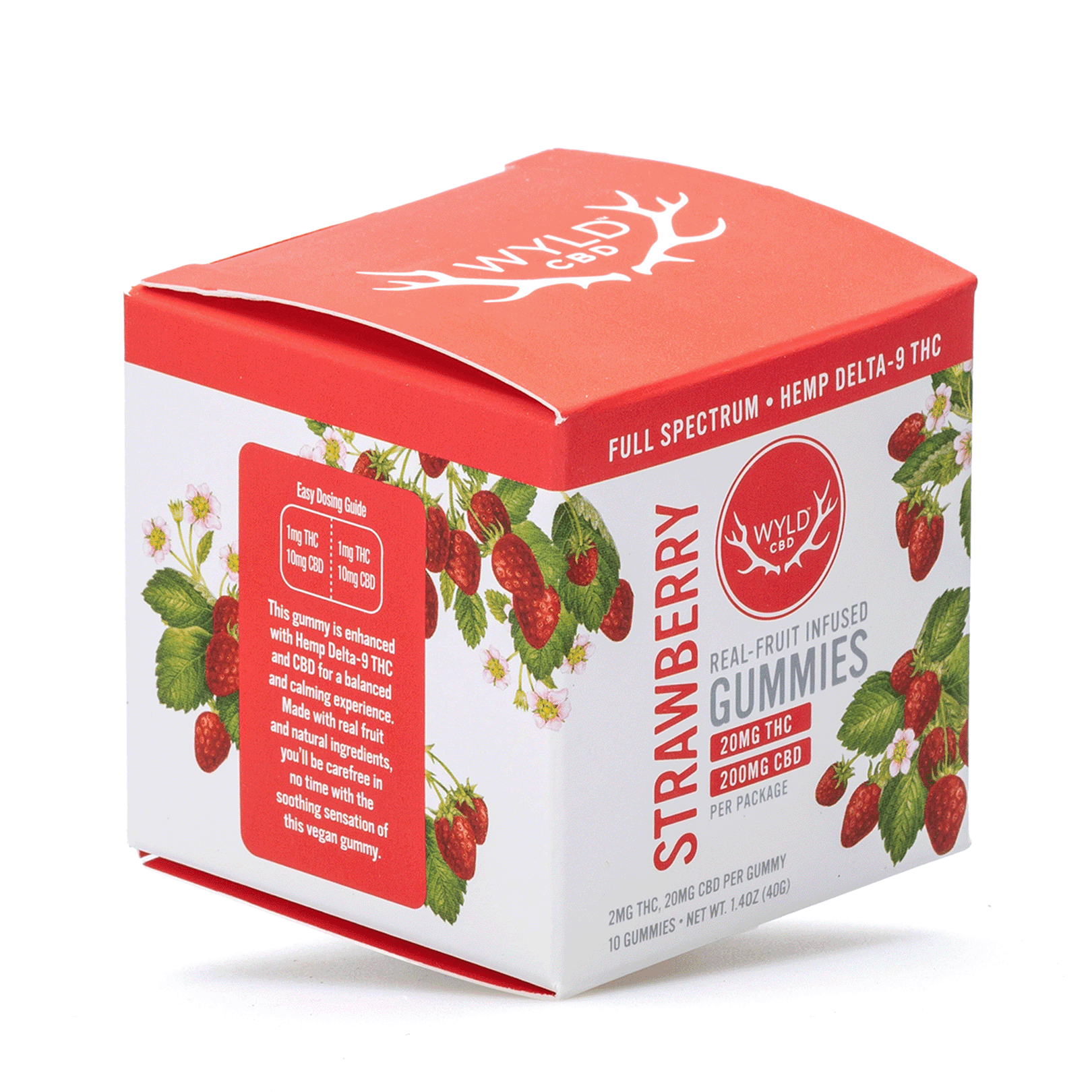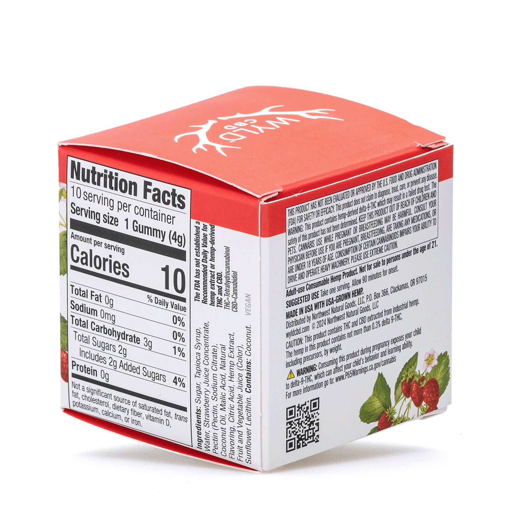 Wyld Delta 9 CBD Low Dose Calm Gummies – Strawberry – 10 Count (20 mg Delta 9 THC + 200 mg CBD Total) COA