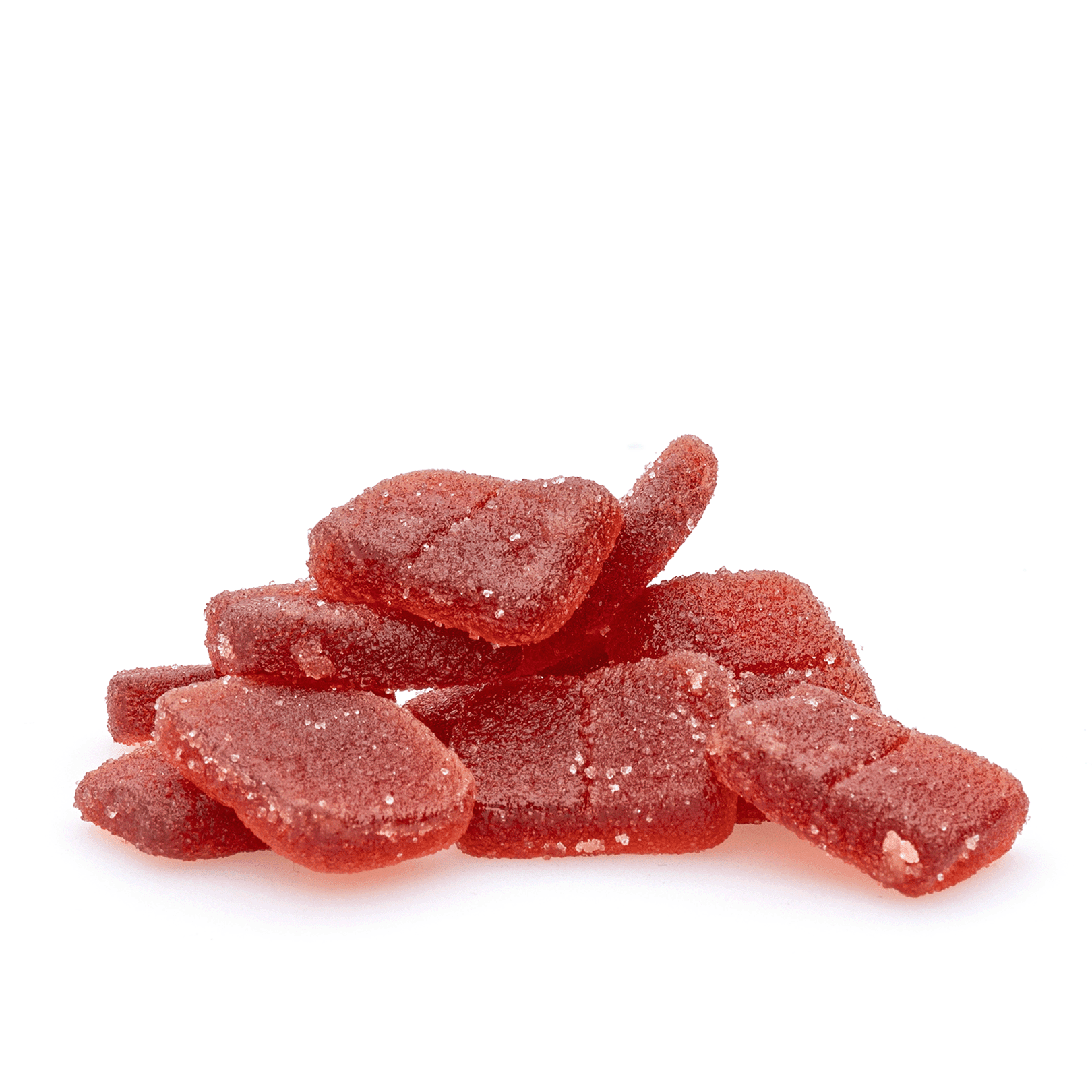 Sugar, Tapioca Syrup, Strawberry Juice Concentrate, Pectin (Pectin, Sodium Citrate), Coconut Oil, Malic Acid, Natural Flavoring, Citric Acid, Hemp Extract, Fruit and Vegetable Juice (Color), Sunflower Lecithin