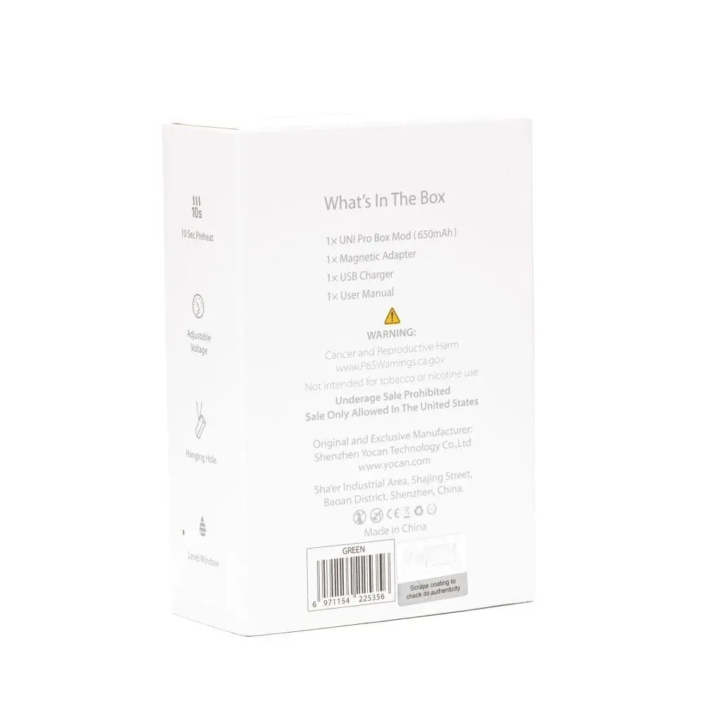 The Yocan UNI Pro Box Mod is outfitted with a 650mAh battery giving you more than enough battery power for casual vaping sessions. So, what are you waiting for? Make sure you check out the Yocan UNI Pro Box Mod now and be the first to experience professional on-the-go cartridge vaping!