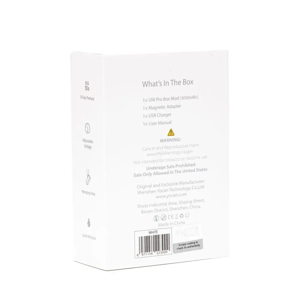 The Yocan UNI Pro Box Mod is outfitted with a 650mAh battery giving you more than enough battery power for casual vaping sessions. So, what are you waiting for? Make sure you check out the Yocan UNI Pro Box Mod now and be the first to experience professional on-the-go cartridge vaping!